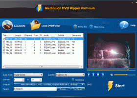 MediaLion DVD Ripper is powerful DVD ripping software which helps you rip DVD to VCD, DivX, AVI, MPEG, VOB, MP3 and other popular video and audio formats with super fast DVD ripping speed and excellent quality. Compared with other DVD ripping software, it has more settings you can customize, such as rip DVD by custom file size, split output file to fit your CD-R, rip DVD’s any segment, select target subtitle and audio track, etc.